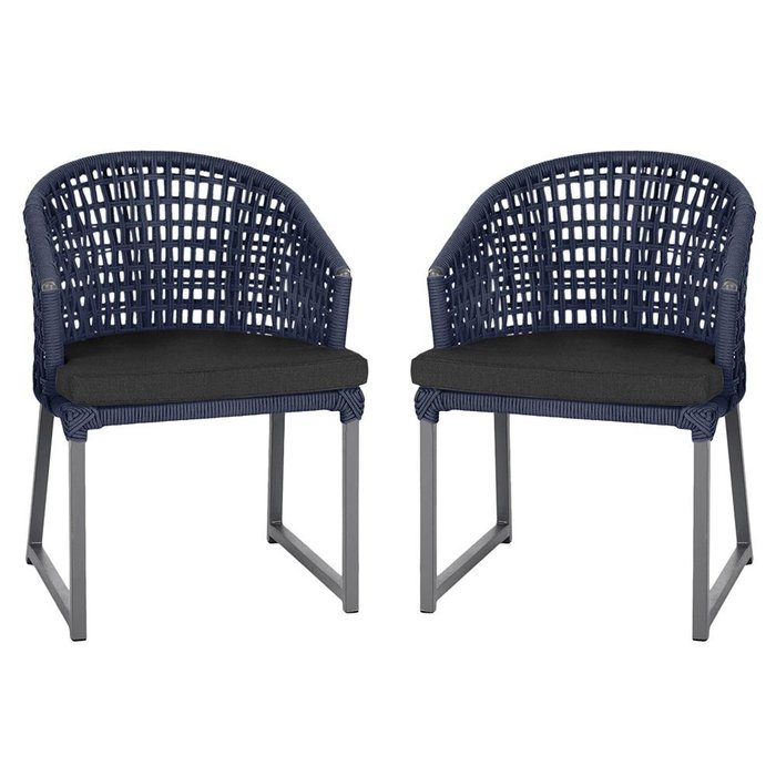 2 Cadeira Noronha Aluminio Micro Pintura Grafite, Tr. Telinha Corda Nautica Azul Marinho, Estofado