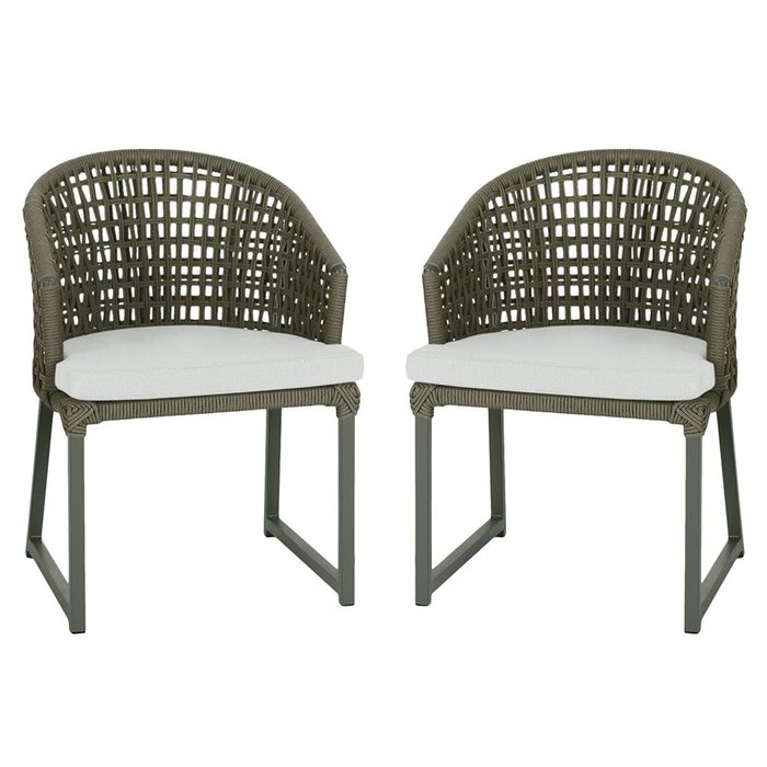 2 Cadeira Noronha Aluminio Micro Pintura Verde, Tr. Telinha Corda Nautica Verde Militar, Estofado -