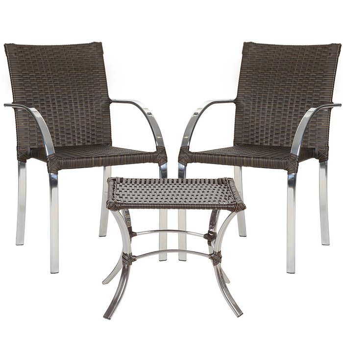2 Cadeiras Ascoli com Mesa Baixa Decore Mobília Pedra Ferro