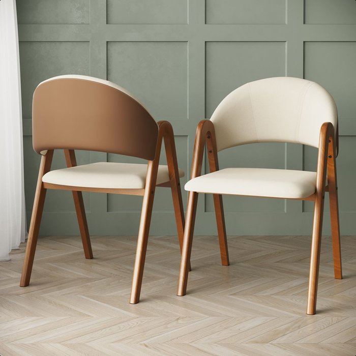 2 Cadeiras de Jantar Madeira Maciça Linho Braços Arredondado:bege