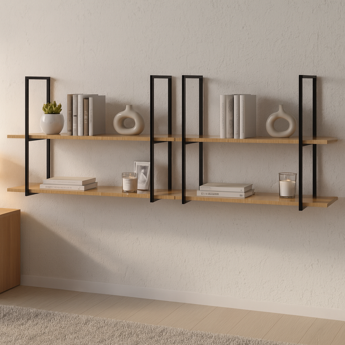 O Kit 2 Prateleiras Tipo Industrial com Suporte Retangular 30x100 cm é ideal para quem deseja unir resistência, funcionalidade e estilo industrial moderno na decoração e organização de ambientes. Produzidas em MDF reforçado de 18 mm e acompanhadas de suportes metálicos robustos com pintura eletrostática preta, oferecem alta durabilidade, estabilidade e um visual sofisticado que valoriza qualquer espaço, seja em salas, quartos, cozinhas ou áreas gourmet.