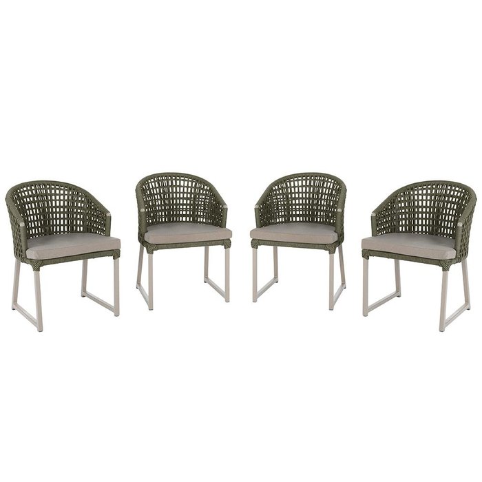 4 Cadeira Noronha Aluminio Micro Pintura Champanhe, Tr. Telinha Corda Nautica Verde Militar,
