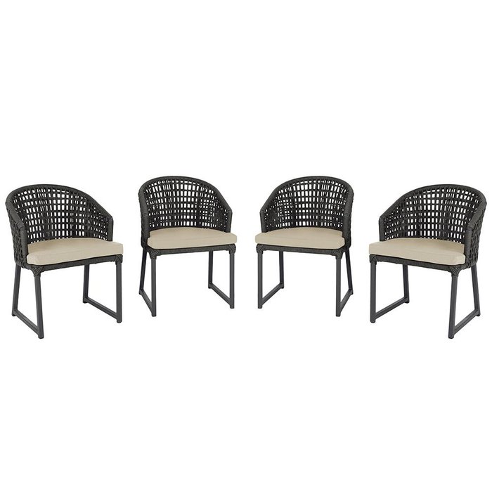 4 Cadeira Noronha Aluminio Micro Pintura Preta, Tr. Telinha Corda Nautica Preta, Estofado - Bege