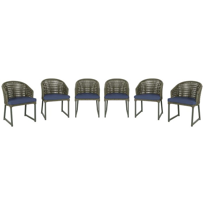 6 Cadeira Noronha Aluminio Micro Pintura Verde, Tr. Telinha Corda Nautica Verde Militar, Estofado -