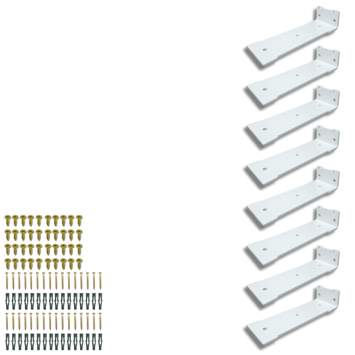 8 Fixadores de Parede Mão Francesa para Prateleira 20cm Formato Largo Estilo Invertido Branco Branco