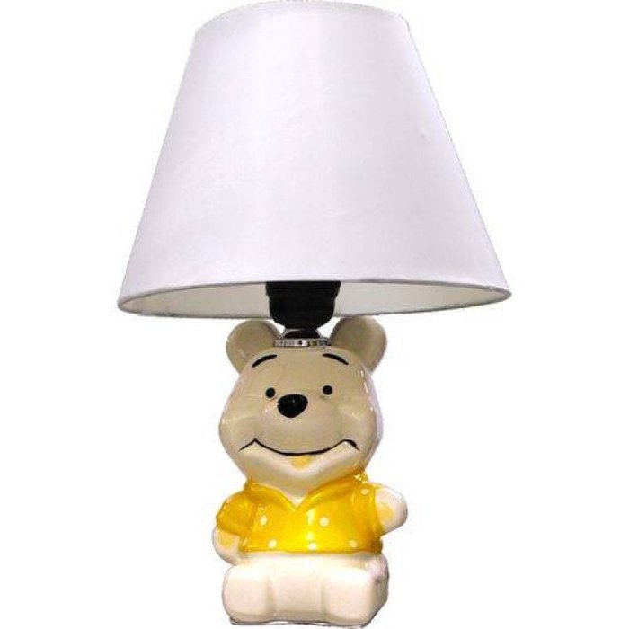 Abajur Infantil Urso Pooh 31cm Base Cerâmica E27 Max 40W Branco