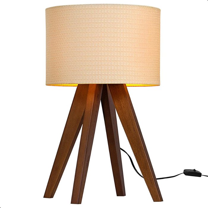 Abajur Madri com Pés de Madeira e Tecido Tramê Bege 51cm Bege
