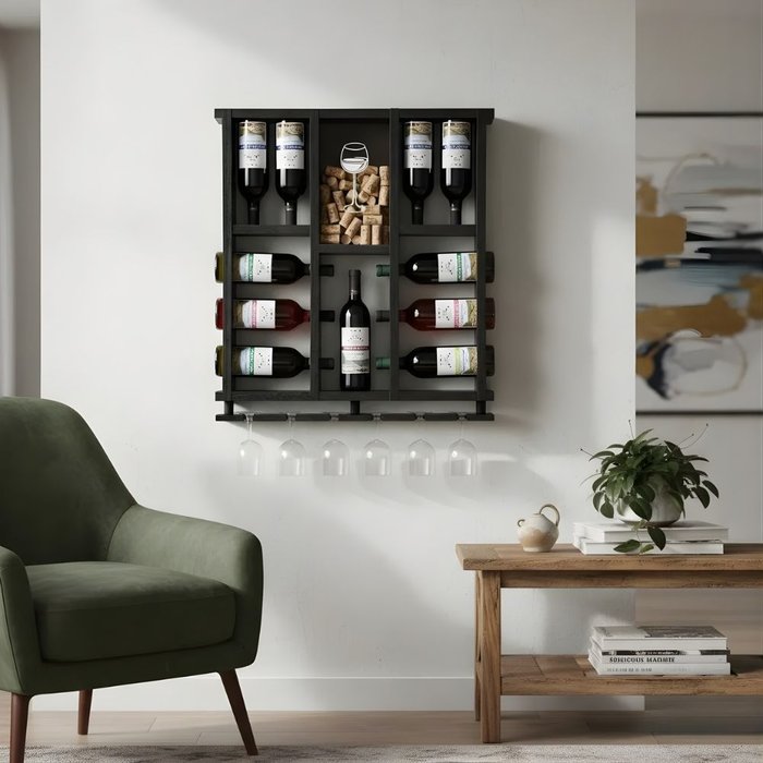 - Comporta até 11 Garrafas de Vinho e 6 Taças;