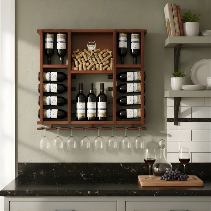 Adega Barzinho de Parede em Madeira Maciça Com Porta Rolhas