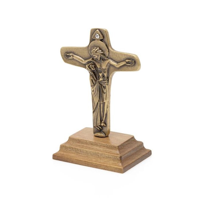 O Adorno Pedestal de Mesa Cruz da Unidade além de ser uma lembrança religiosa pode ser usada também como um item decorativo em casa, escritórios e ambientes corporativos. Seu tamanho facilita o uso em espaço limitados e que requerem descrição na decoração.