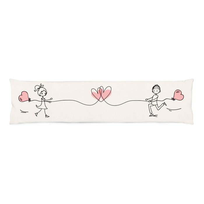 Almofada Longa Decorativa Corações Conectados - Casal com Balões de Amor | 140x30cm