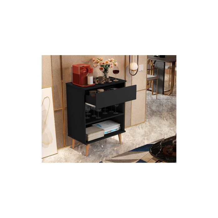 Aparador Buffet Beatriz Cantinho do Café 1 Gaveta com Pés Retrô - Preto