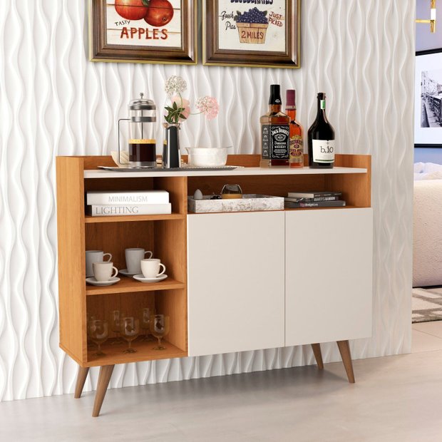Aparador Buffet Retrô Celta é ideal para sua sala, com designer retrô ele irá agregar muito mais charme e requinte ao seu ambiente. Possui 2 portas com dobradiças metálicas, nicho, 2 prateleiras externa e 1 prateleira interna com excelente espaço. Um amplo tampo para acomodar bebidas, objetos de decoração, taças etc. Pés em madeira maciça, esses atributos garantem ao produto maior resistência e durabilidade.