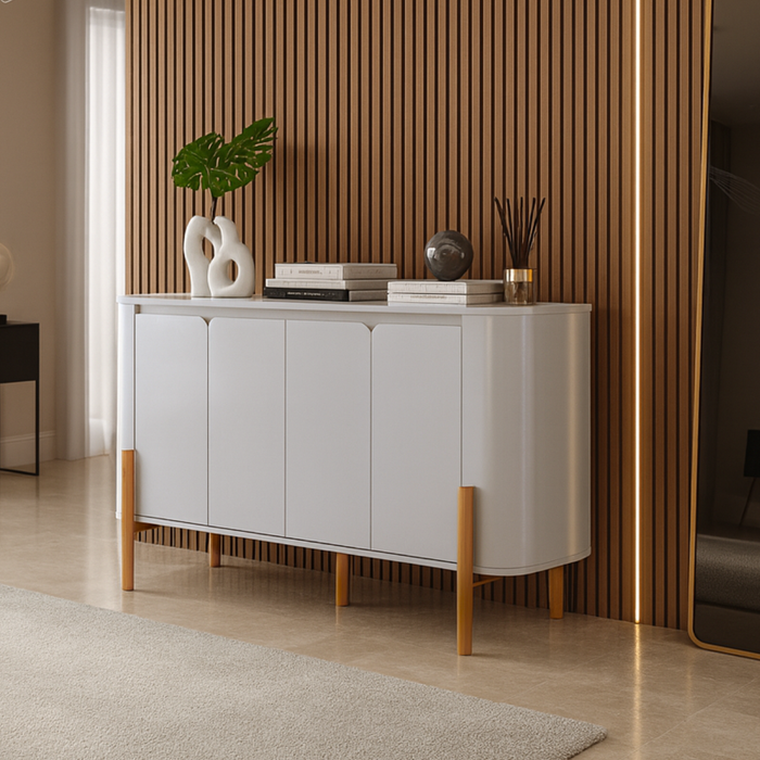 O Aparador Olívia se destaca pelas linhas curvas e suaves que trazem leveza e sofisticação. Seu acabamento acetinado combina com diferentes estilos de decoração, desde o contemporâneo ao escandinavo.