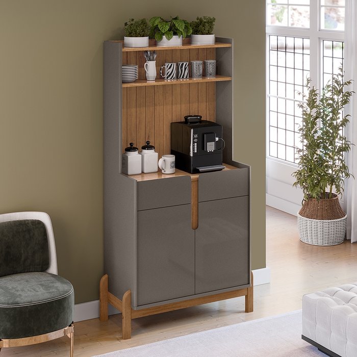 Aparador Cantinho do Café Lizz 02 Portas 02 Gavetas Cinza Pérola Cedro Casa D
