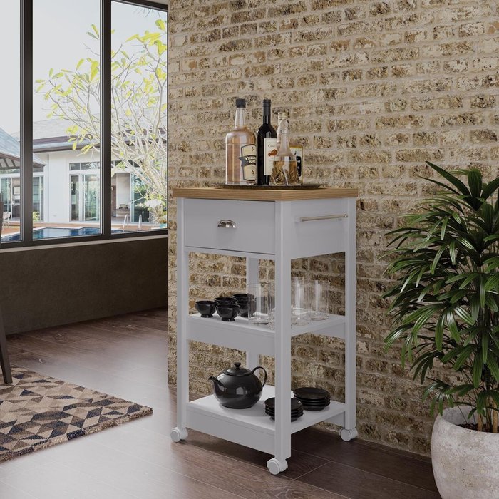 Aparador Carrinho Chá 1 Gaveta Cinza