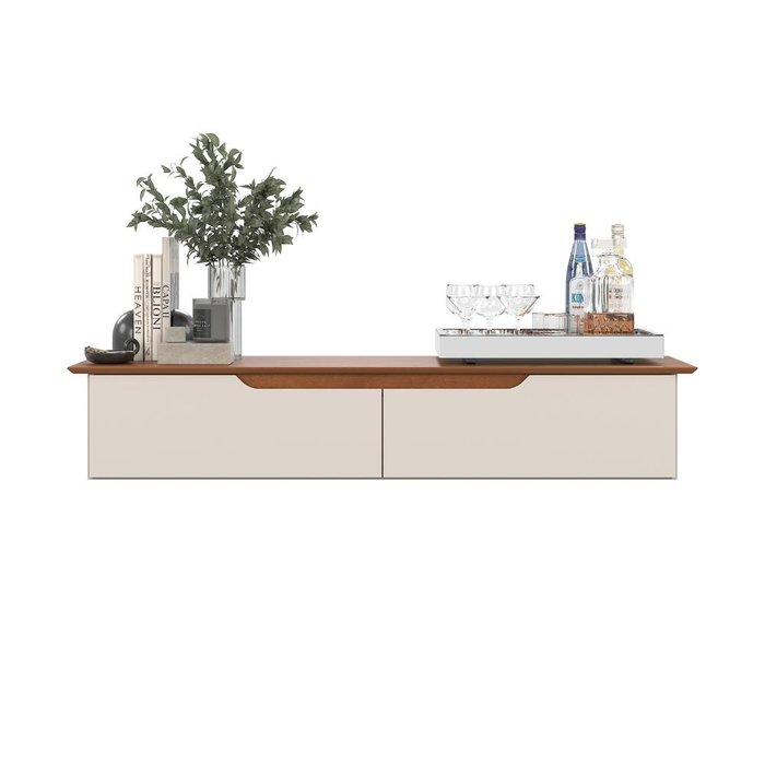 Aparador Rack Suspenso Eros Flow 2 Portas - Ej Móveis Off White/Freijó