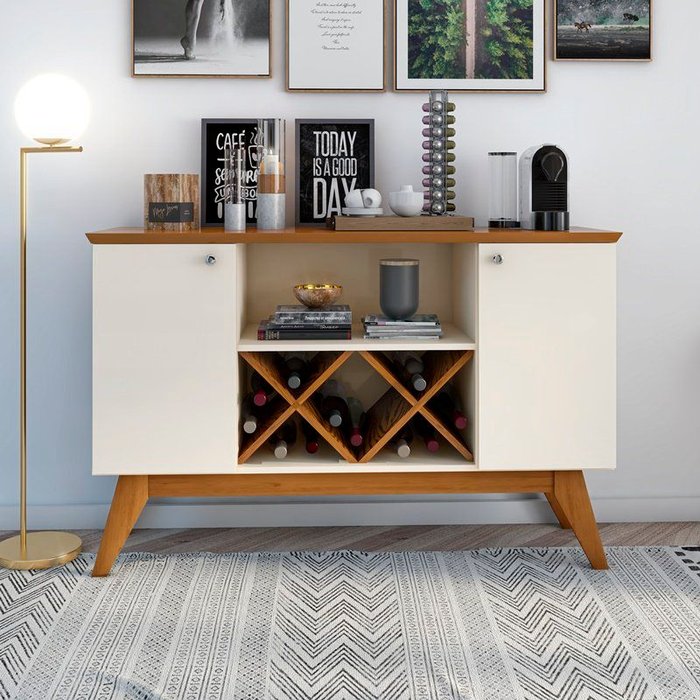 Aparador Sala Pés em Madeira Maciça - Ellegance 2 Portas: Off/freijo