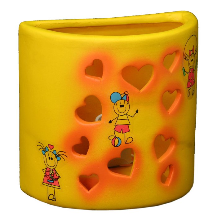Arandela Artesanal Retrô Cerâmica Infantil Coracao Amarela