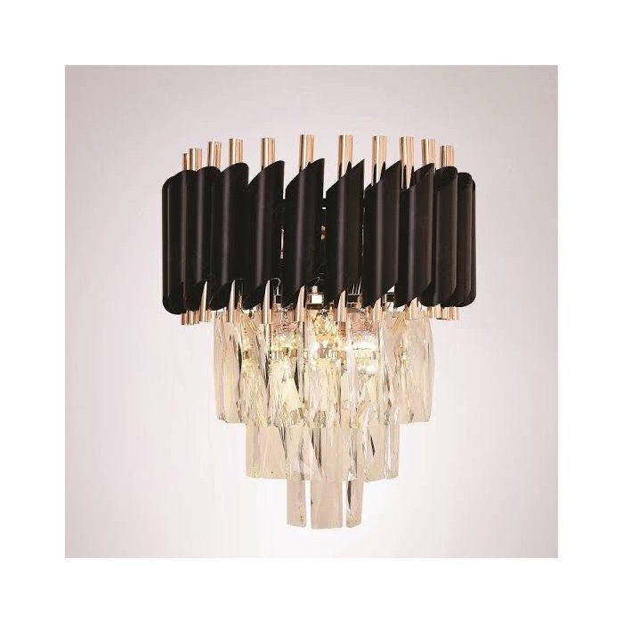 A combinação do metal preto com os cristais transparentes cria um visual contemporâneo e elegante, que se adapta a diversos estilos de decoração.