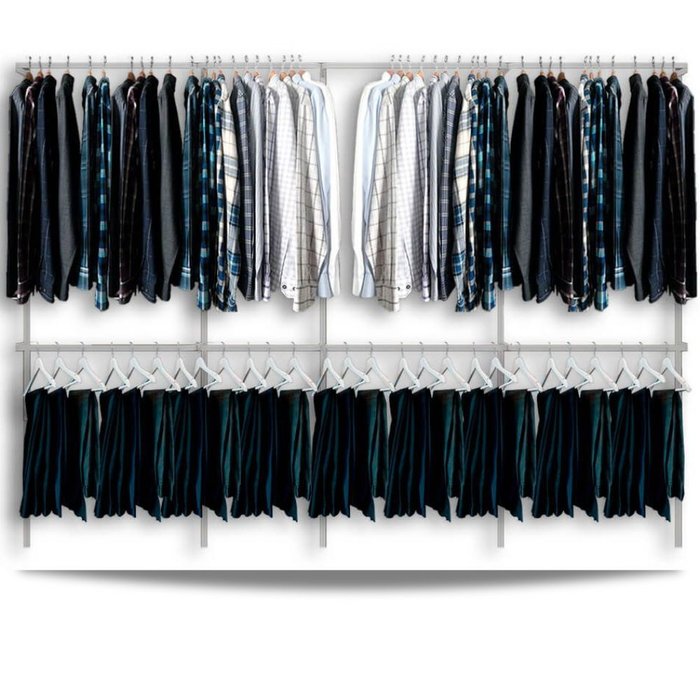 Dimensão: 3,40 x 0,50 m (LARGURA x PROFUNDIDADE)Descritivo das peças que compõe o produto:2 CABIDEIRO 60CM BRANCO6 CABIDEIRO 90CM BRANCO3 CREMALHEIRA 200CM - DUPLA (c/ bucha e parafuso)2 CREMALHEIRA 200CM - SIMPLES (c/ bucha e parafuso) Quantidade de peças organizadas (*):198 *roupas penduradas;Vantagens dos aramados modulares: 1. Garantia de 1 ano2. Hipoalérgicos - inibem a formação de fungos como o bolor3. Modulável - as peças podem ser intercambiadas em módulos de mesma dimensão4. Escalonável - possibilidade de corrigir altura entre as peças a qualquer momento sem a ajuda de ferramentas ou mão de obra especializada5. Material - aço carbono 1020 com pintura eletrostática a pó6. Carga - 20 kg por peçaTempo de montagem - aproximadamente 1hMaterial: Aço carbono com pintura eletrostática a póCor aramado: Branco Acompanha o pedido:- Instruções de montagem- Buchas, engates e parafusos.- Nota fiscal