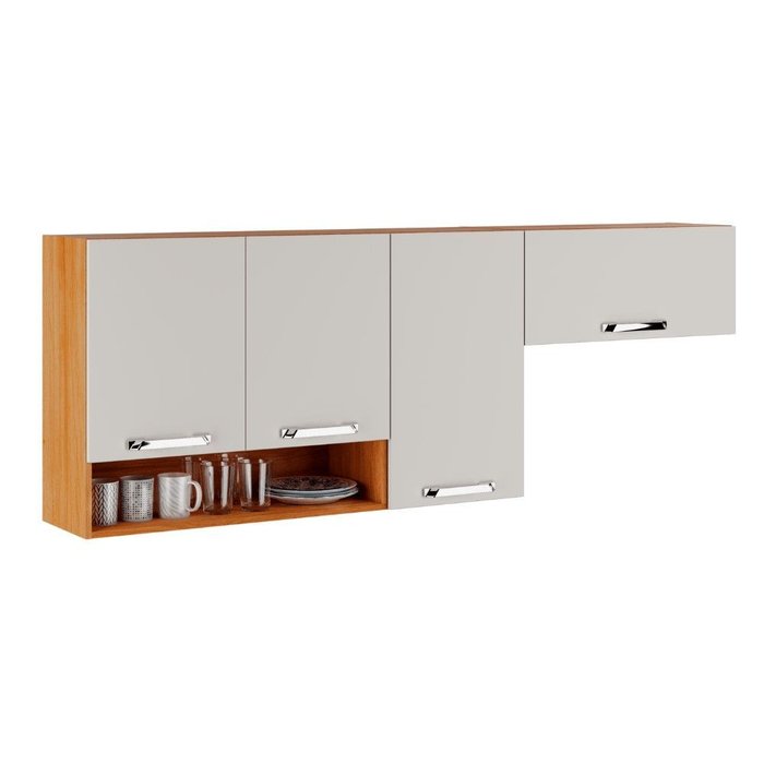 Armário Aéreo de Cozinha em Madeira 3 Portas 1 Nicho Cinamomo Off White Vegas - Itatiaia