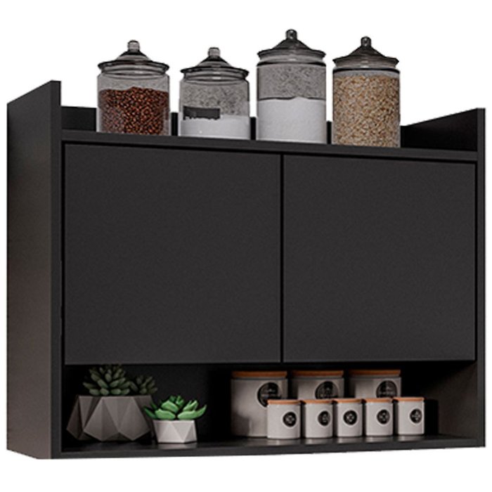 Armário Aéreo para Cozinha 2 Portas Lia M05 Preto - Inoviza