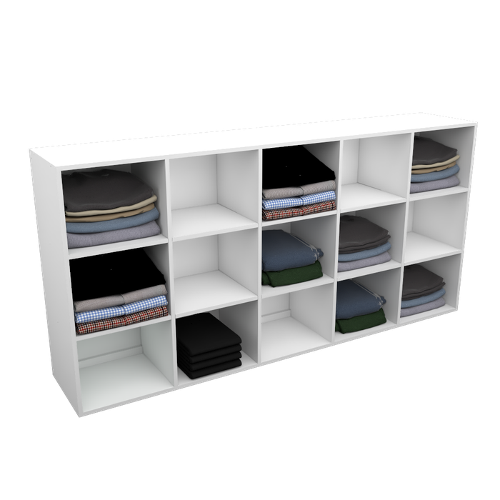 CONTÉM 2 PRATELEIRAS, 4 DIVISÓRIAS COM 15 NICHOS