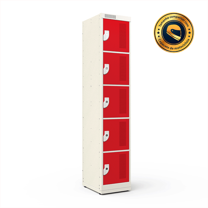 Armário de Aço Multiuso 5 Portas - Nk 1335 Compatível com Capacete Nilko Armários Vermelho Cadeado P Vermelho