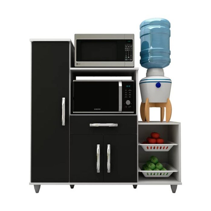 Se você procura por praticidade e estilo na sua cozinha, o Armário de Cozinha Com Fruteira e Nicho Ibiza Branco/Preto da Lumil, é a escolha ideal.