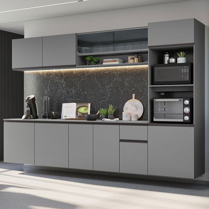 Armário de Cozinha Completa 300cm Suspenso Nice Madesa 03 Cinza