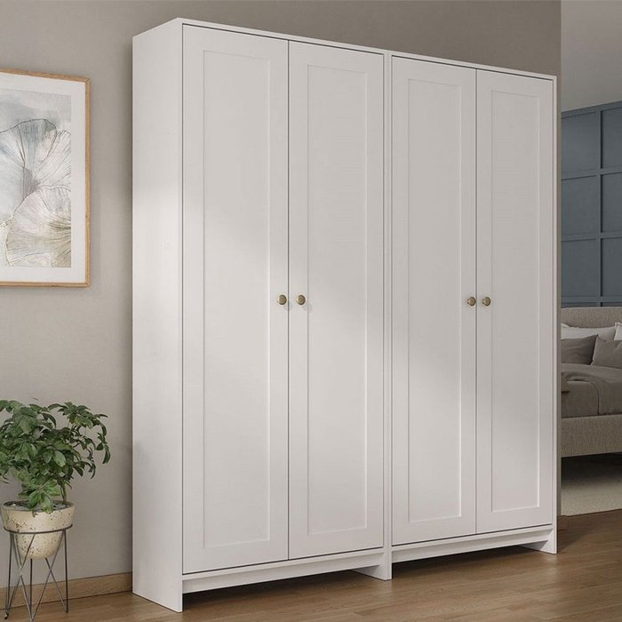 Armário de Lavanderia Americano 4 Portas 8 Prateleiras Branco - Pnr Móveis