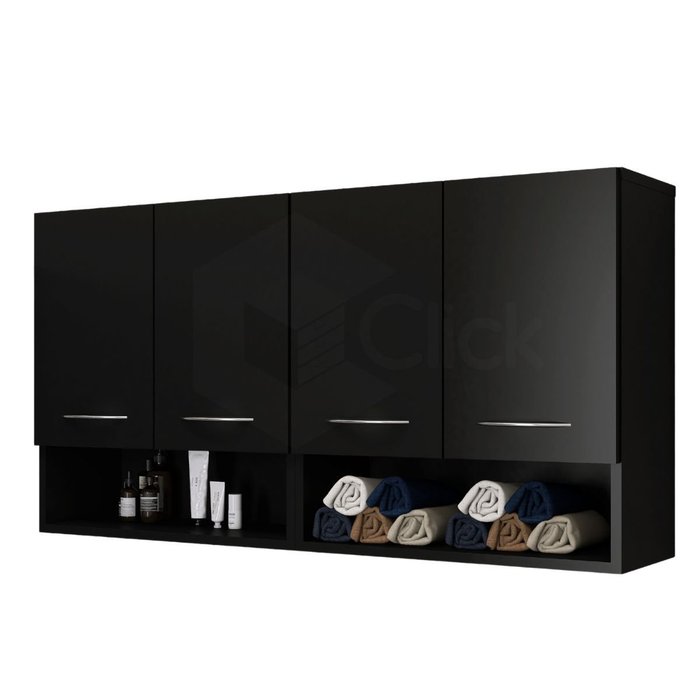 Armário Parede Suspenso Branco Multiuso Cozinha 4 Portas ClickForte Armário Multiuso Preto