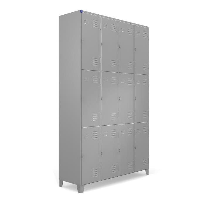 Armário Roupeiro Locker de Aço 12 Portas Vestiário Cinza