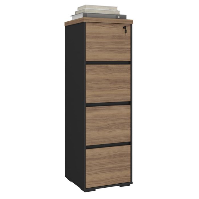Arquivo com 4 Gaveta com Tranca Estônia Freijó Branco Nogal/Preto