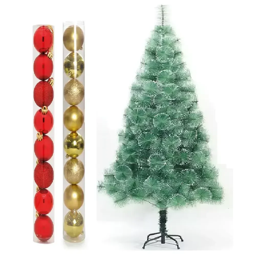 Esta árvore vem acompanhada de um kit de 24 bolinhas de 4 cm, sendo 12 na vibrante cor vermelha e 12 na elegante cor dourada. Essa combinação adiciona um toque de sofisticação e alegria à sua decoração natalina. Ideal para a sala de estar, hall de entrada ou qualquer espaço, ela é o elemento central que trará magia e calor às suas celebrações.