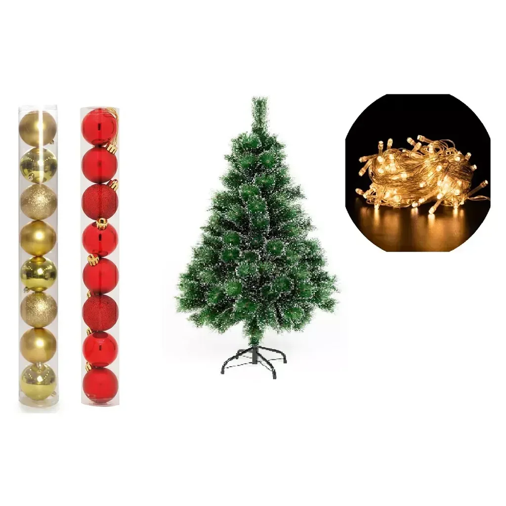 Acompanha um kit especial com 36 bolinhas de 6 cm, sendo 18 na vibrante cor vermelha e 18 na sofisticada cor dourada, que trazem um toque elegante e festivo à sua árvore. Para completar a magia do Natal, incluímos um pisca-pisca LED com 100 lâmpadas amarelas, criando um efeito iluminado encantador.