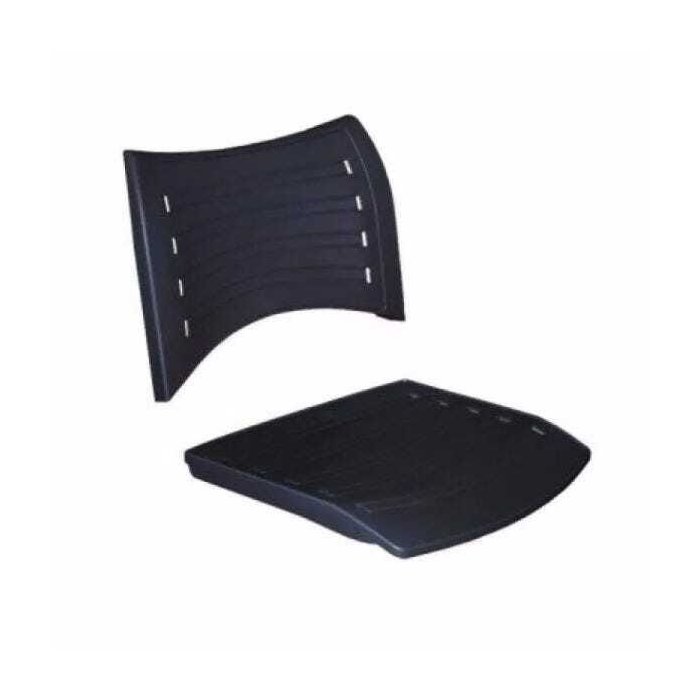 Conjunto de assento e encosto para cadeira ISO fixa, giratória e longarinas. Confeccionada em polipropileno Polipropileno(PP) de alta resistência pelo sistema de injeção termoplástica.O encosto fixa-se na estrutura através de encaixes retangulares e trava-se na estrutura através de pino tampão também confeccionado em polipropileno (pp) da mesma cor do encosto.