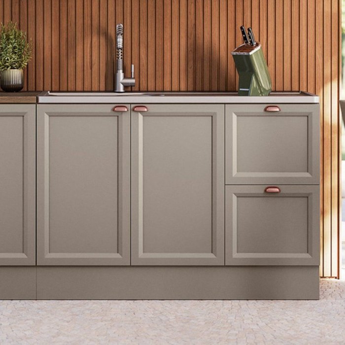 | Informações Complementares (Novo) | Portas almofadada/moldurada em MDF, sem tampo, corrediças telescópicas, dobradiças reforçadas de 35mm, puxadores modelo retrô em polímero, prateleira fixa, estrutura em MDP Perffect Touch com acabamento fosco, pés PVC reguláveis. |