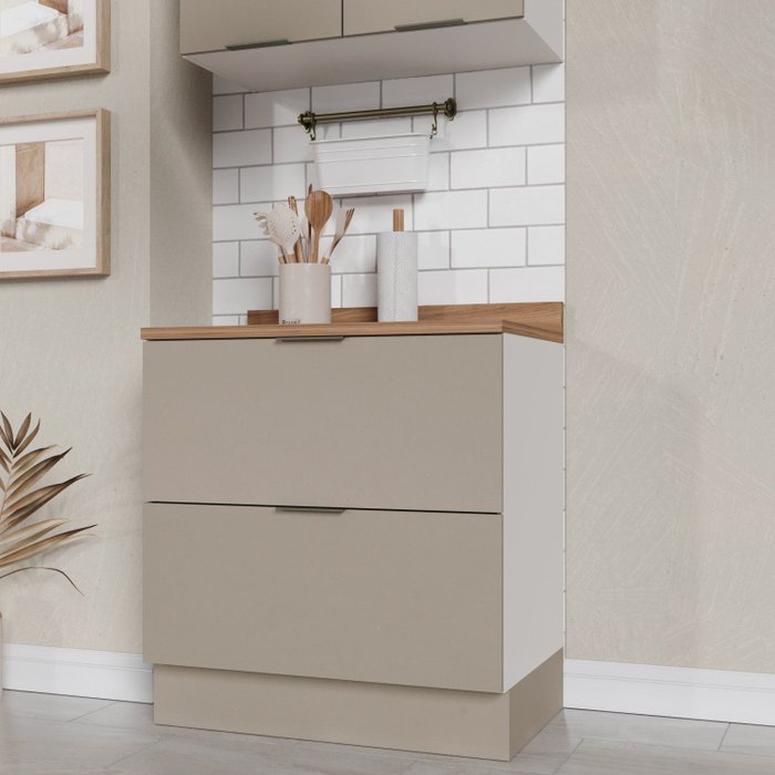 Balcão 2 Gavetões com Tampo e Rodapé Ipanema CabeCasa MadeiraOriginals Fendi Trama/Branco