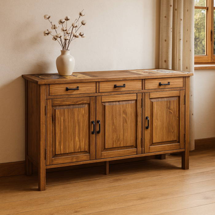 O balcão para sala de estar combina charme rústico e funcionalidade, trazendo um toque sofisticado e atemporal para qualquer espaço. Com um design que valoriza a madeira maciça e os detalhes vintage, ele é perfeito para compor áreas de lazer, espaços gourmet ou complementar a decoração natural da casa.