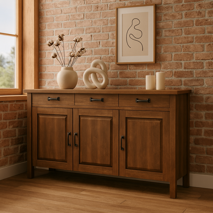 O balcão para sala de estar combina charme rústico e funcionalidade, trazendo um toque sofisticado e atemporal para qualquer espaço. Com um design que valoriza a madeira maciça e os detalhes vintage, ele é perfeito para compor áreas de lazer, espaços gourmet ou complementar a decoração natural da casa.