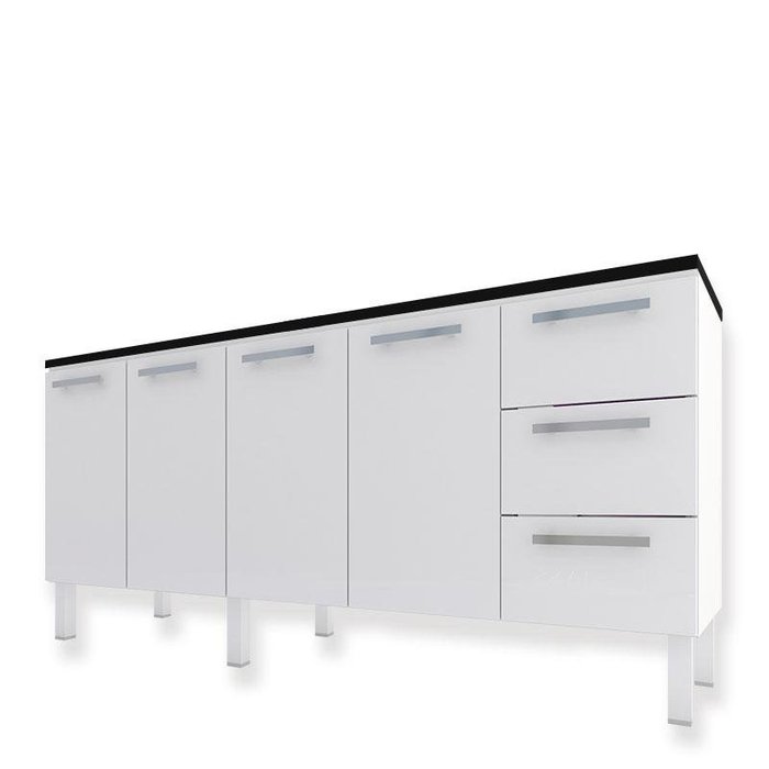 Balcão Cozinha Aço 200 Vênus 3 Gavetas Com Tampo Cozimax Branco preta