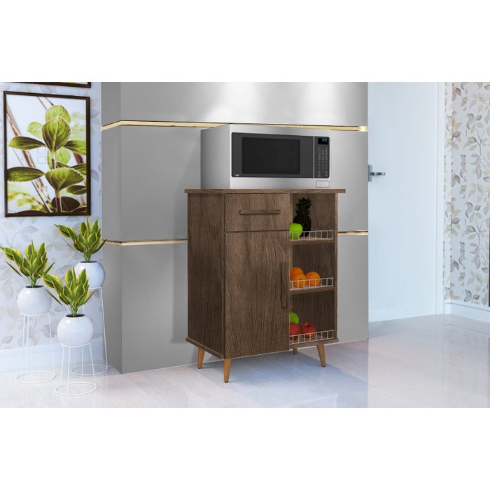 Balcão / Fruteira Cris Estilo Retrô com Pés em Madeira Cor Canela Rm