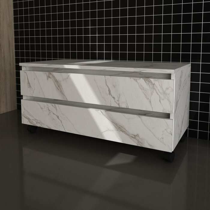 Balcão Gabinete Gaveteiro Multiuso 80 cm 2 Gavetas 4 Rodízios Para Banheiro Cor Branco Mármore Branco Mármore