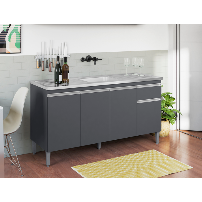 Balcão Gabinete para Pia Tatiane sem Tampo 150cm Ajl Móveis - Cinza Cinza
