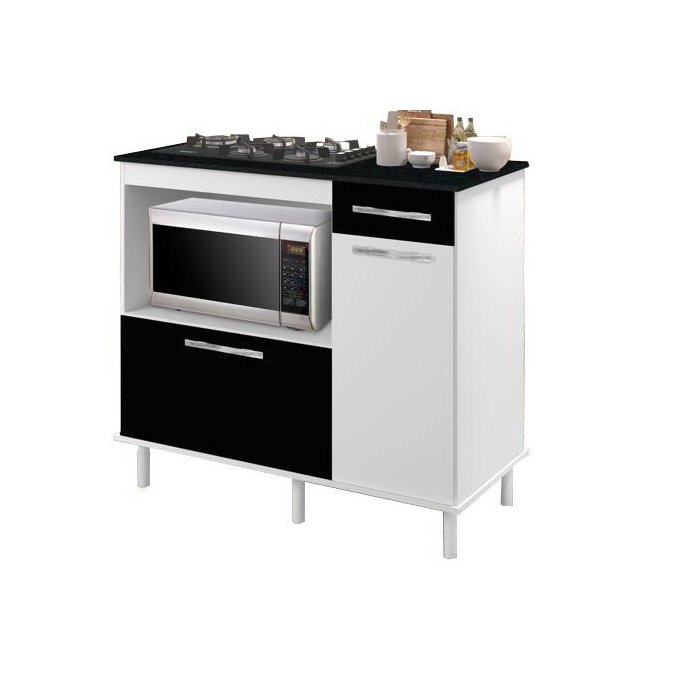 Balcao Honduras cor BR / PRETO p/ cooktop 5 bocas e p/ Forno PASSE BEM Branco / Preto