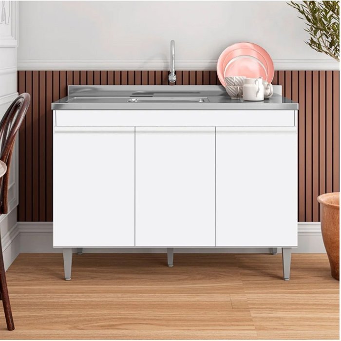 Balcão Manu com Pia e Cuba Ghelplus 120cm Branco Ajl Móveis