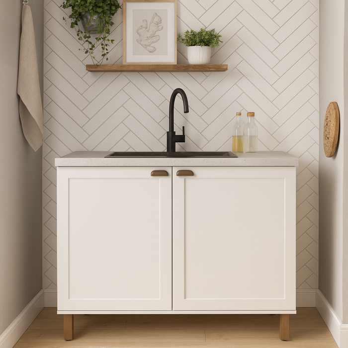 O Balcão pode ser utilizado tanto com tampo de 1,20 como com cuba. Permite também o uso de pedra no mesmo.