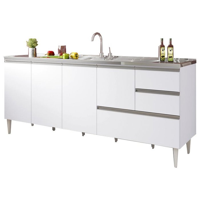 Balcão para Pia de 2,00 Mt Maceió com Gavetão Branco Puxador Aluminio
